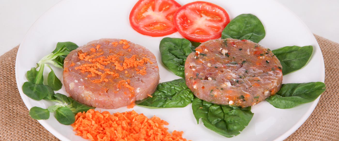 Hamburgérs de perú preparados com carne selecionadas que lhes conferem suculência e suavidade, estão disponíveis em duas composições distintas: