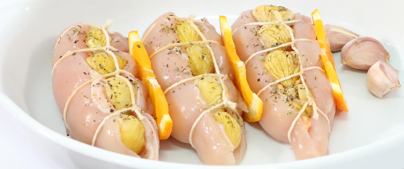 Preparado a partir de peitos de frangos selecionados pela sua suculência e macieza, combinadas com castanhas e farinhaira tradicional de Almeirim, é garantia de um prato de intenso requinte.